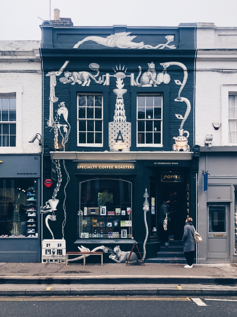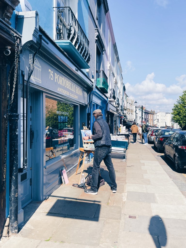 Honestly even the walk from the station is lovely. take your time strolling up Pembridge Road and then Portobello Road, the streets are quaint and lined with pretty houses, shops and coffee shops. Once the street market starts vendors selling all manner of antiques and trinkets spill out of the shop fronts with their colourful facades.