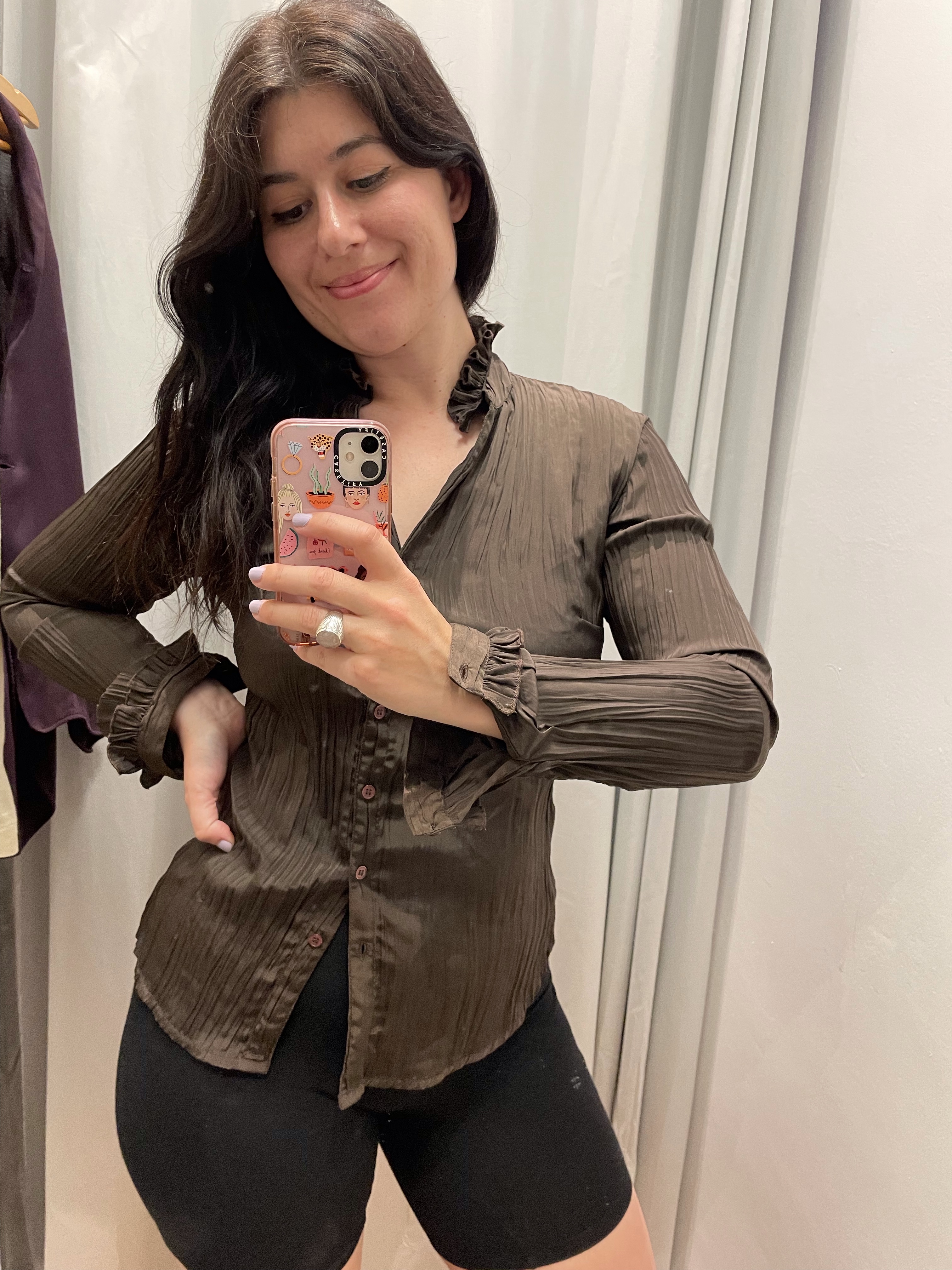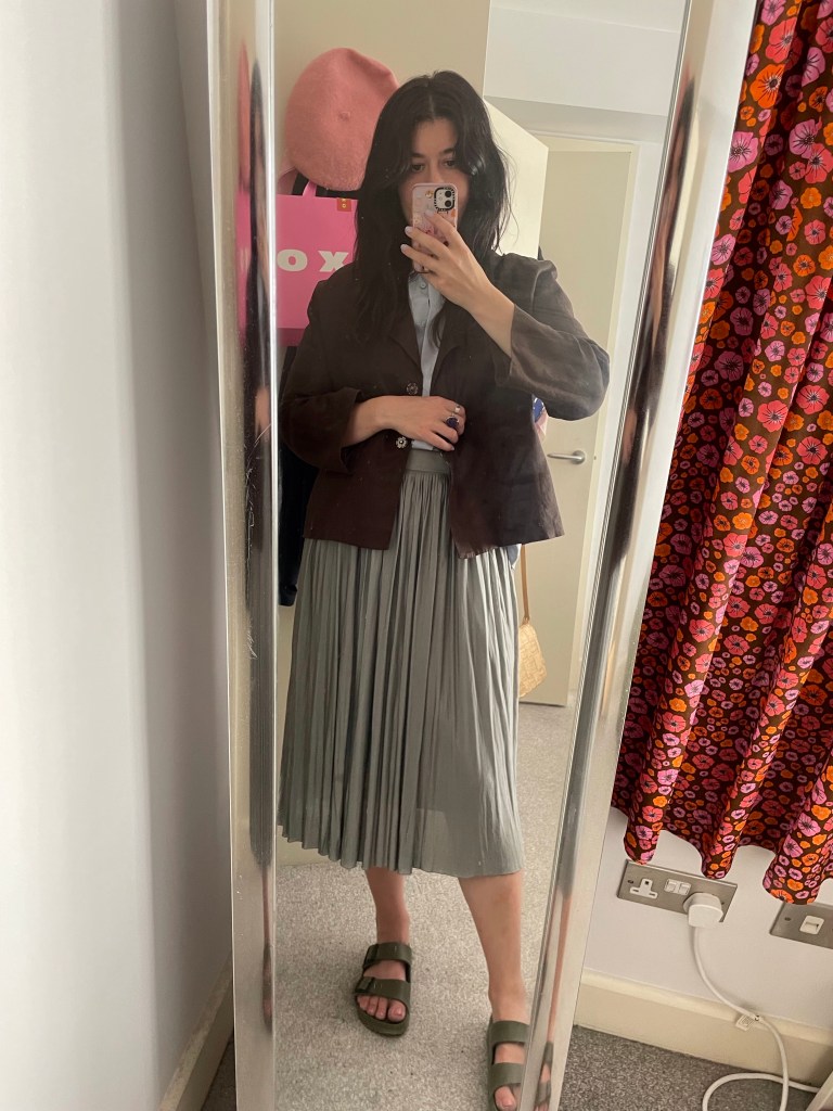 I mentioned this in an earlier post but Farah charity shops are just so underrated in my opinion. Take this outfit for example. The top half (shirt and jacket)? All Fara Gloucester Road store. Love them separately but I love them layered together as well. What do you think of chocolate brown/dark brown clothing? Feels like vegemite, you either love it or hate it. It never used to be a go to colour for me but much like red wine and blue cheese the older I get the more I love it. Maybe my fashion palette is maturing alongside my actual taste palette, is that a thing? I thought it went well with creams and other brown shades but I’m really liking it with other pastel shades too as you can see from one I’ve styled it in the photos below.